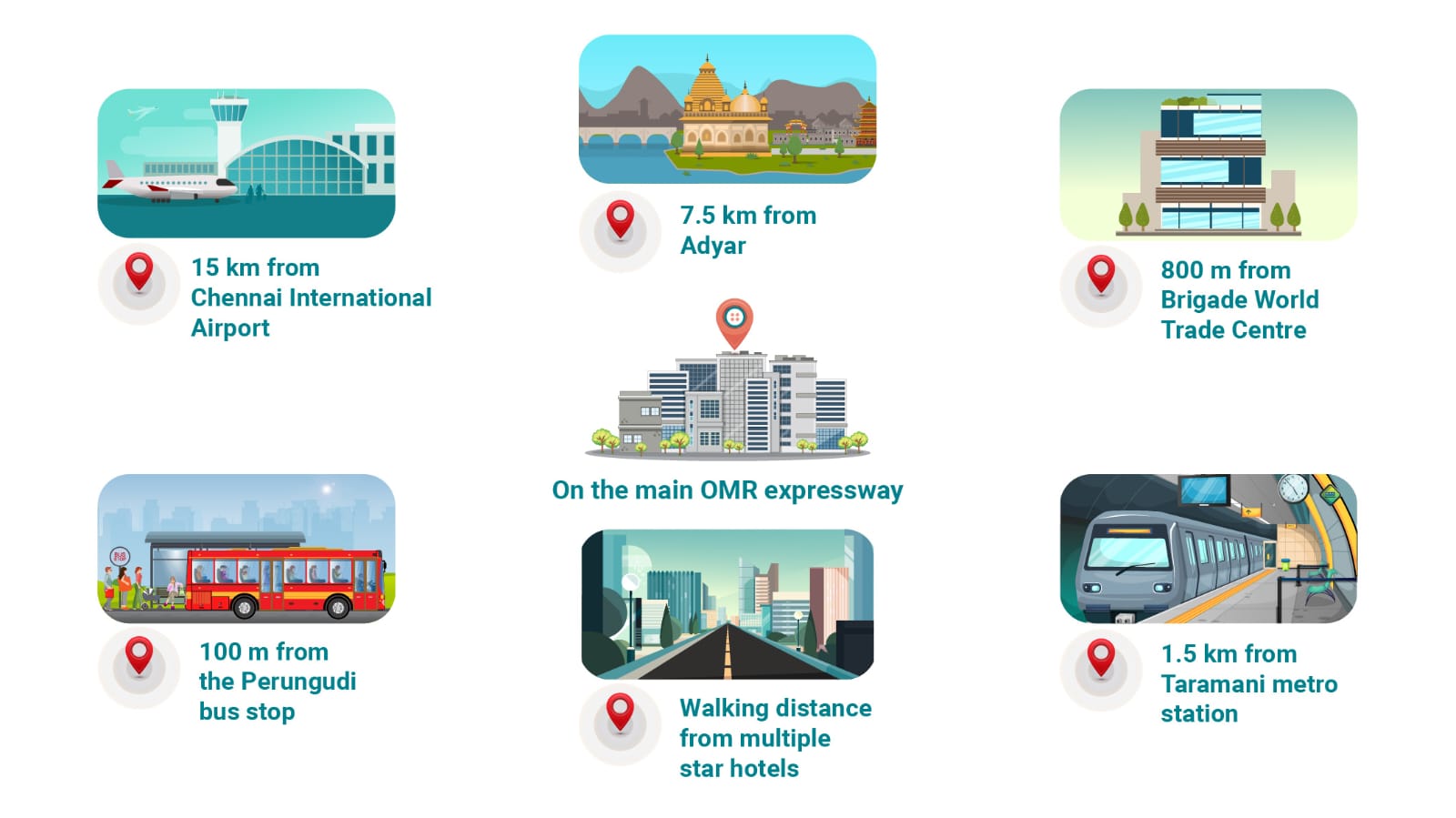 2. 1.5 km from Taramani Metro Station, and 100 meters from the Perungudi Bus Stop
