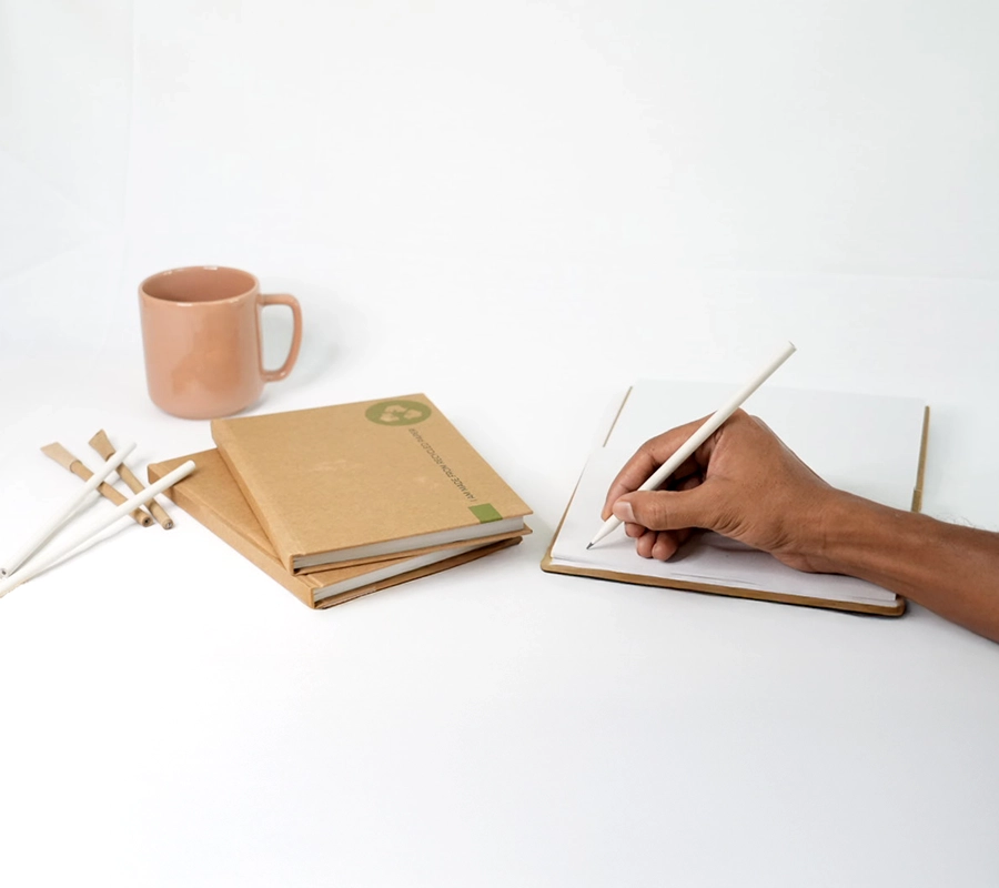 · Size A5 · 150 Pages · Unruled · Hardbound cover page · Can be customised – MOQ 100nos · FSC certified